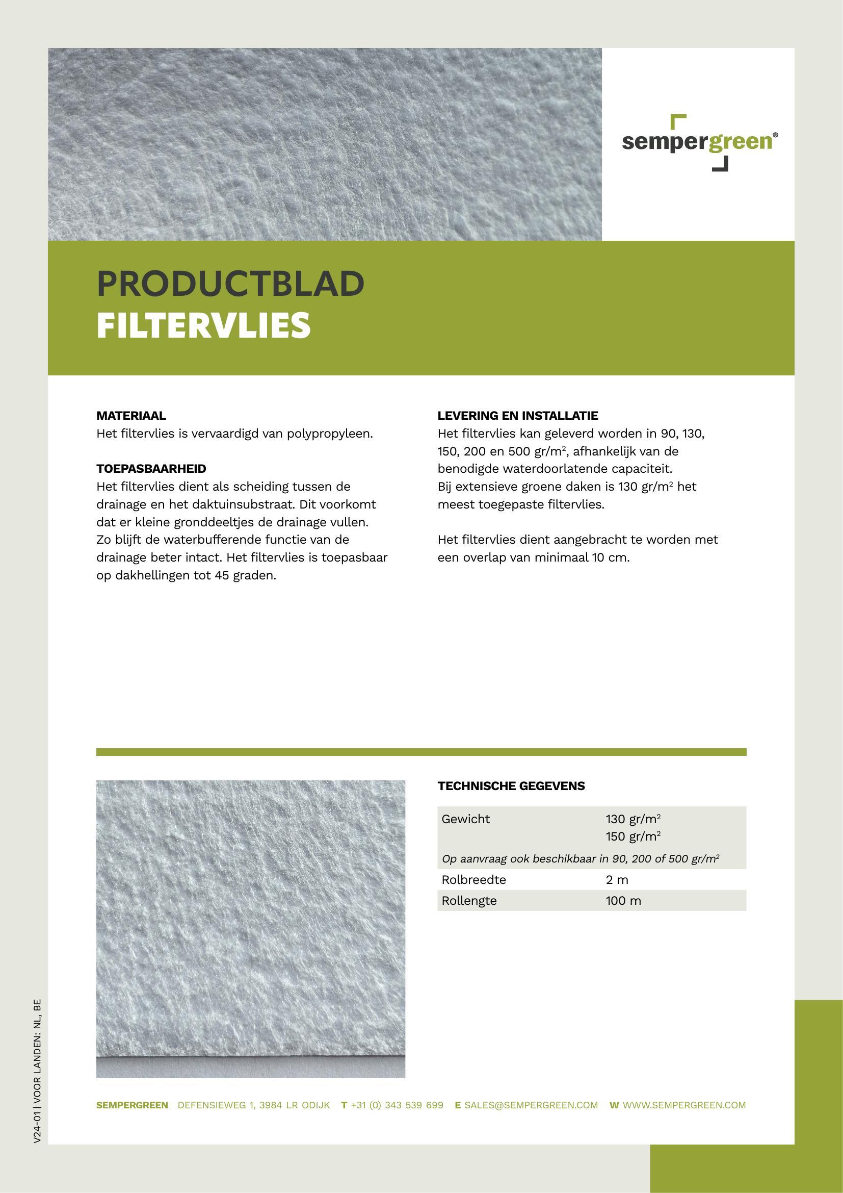 Bij extensieve groene daken is 130 gr/m2 het meest toegepaste filtervlies.