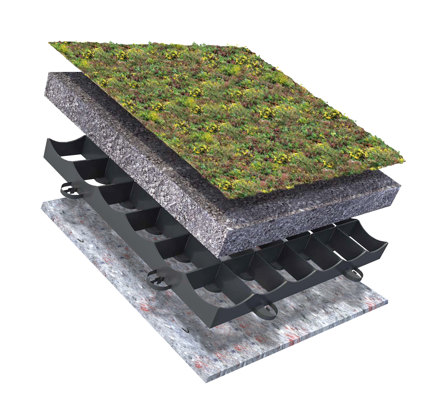 Dit groendakpakket bevat de Sedummixmat Type T, extensief daktuinsubstraat in bigbag(s), AA-plaat S50 en een waterbufferend vlies 1200g. Houd rekening met 10% snijverlies/overlap.