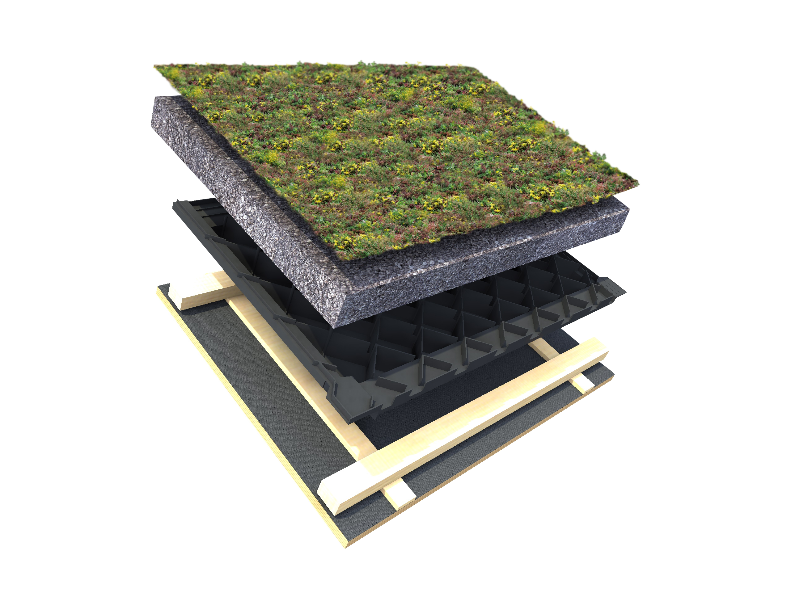 Dit groendakpakket bevat de Sedummixmat Type T, extensief daktuinsubstraat in zakjes en de groendakschaal GDS30. Houd rekening met 10% snijverlies/overlap.
