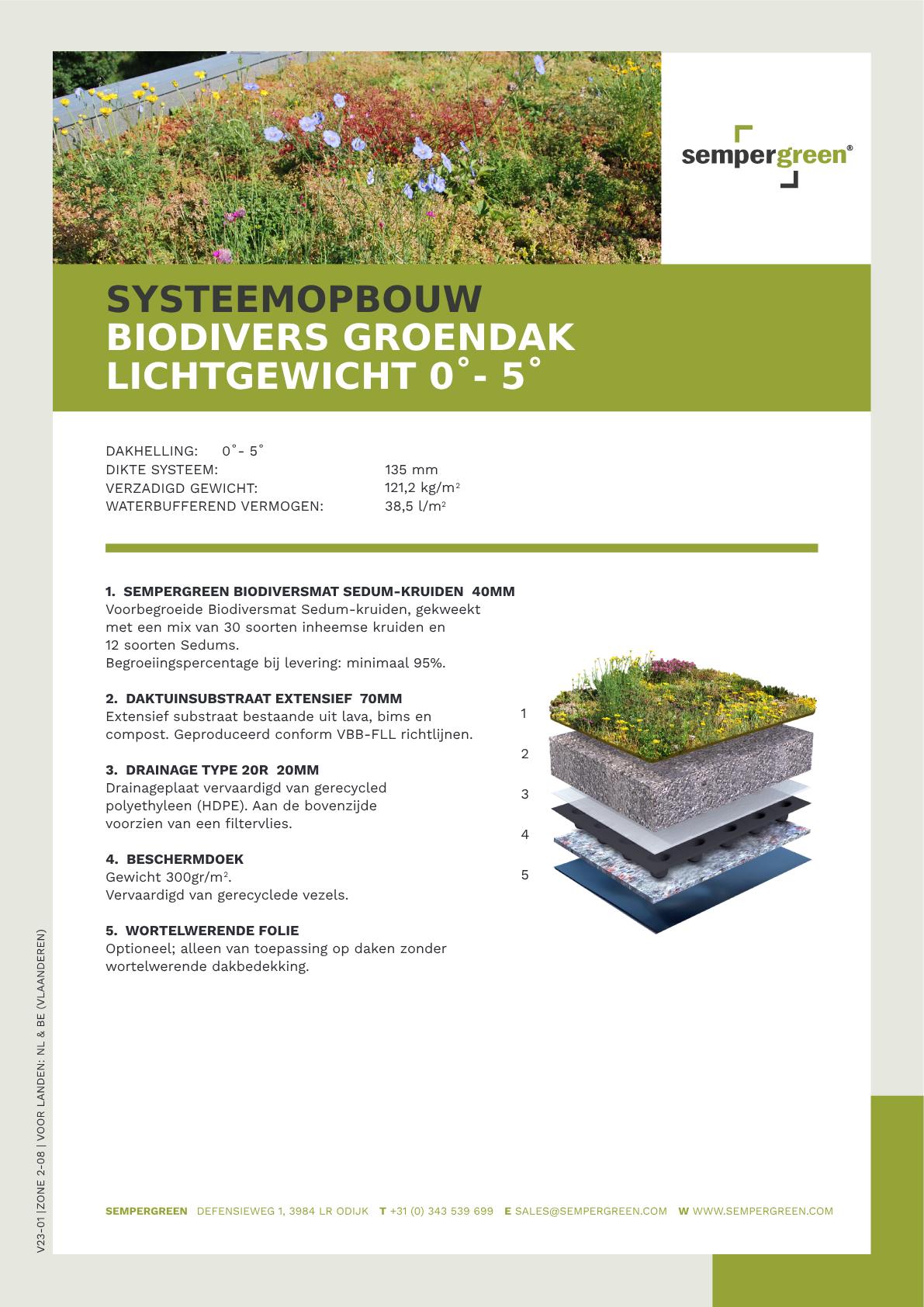 Dit groendakpakket bevat de Sedum-kruidenmat, intensief daktuinsubstraat in bigbag(s), drainage 20R en een beschermdoek. Houd rekening met 10% snijverlies/overlap.