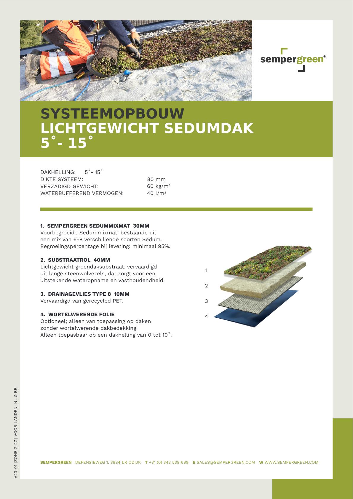 Dit groendakpakket bevat de Sedummixmat, greenroll 40 mm en drainage type 8. Houd rekening met 10% snijverlies/overlap.