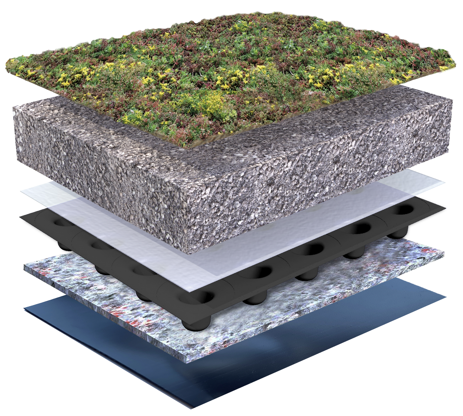 Dit groendakpakket bevat de Sedummixmat, extensief daktuinsubstraat in zakjes, drainage 540, filtervlies 130g en een beschermdoek. Houd rekening met 10% snijverlies/overlap.