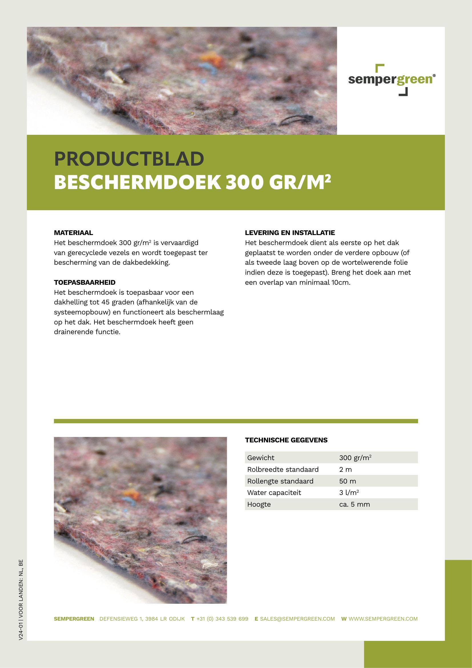 Het beschermdoek 300 gr/m2 is vervaardigd van gerecyclede vezels en wordt toegepast ter bescherming van de dakbedekking.
