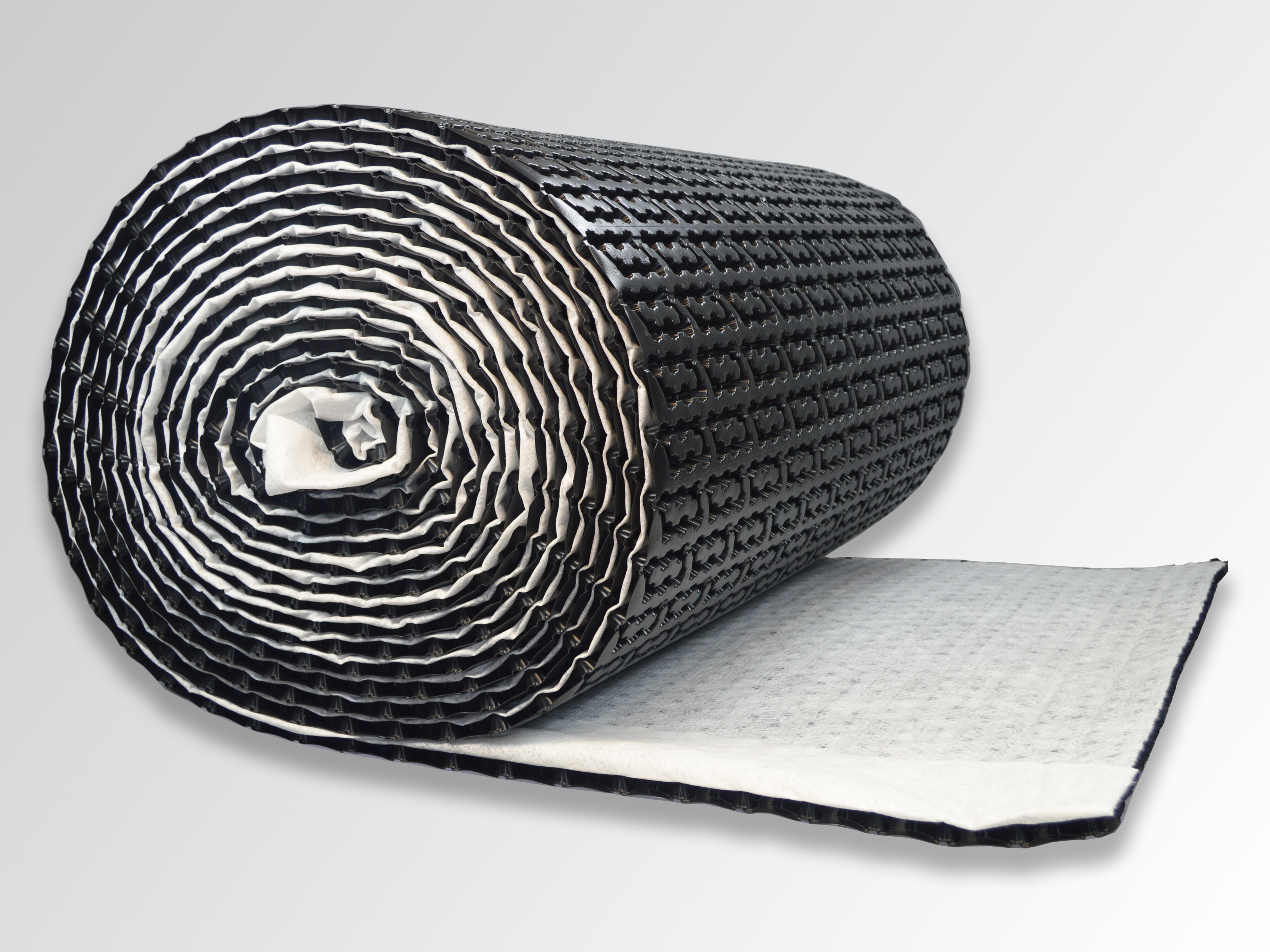 De plaat is aan de bovenzijde voorzien van een gelamineerd niet-geweven (non woven) polypropyleen (PP) filtervlies.