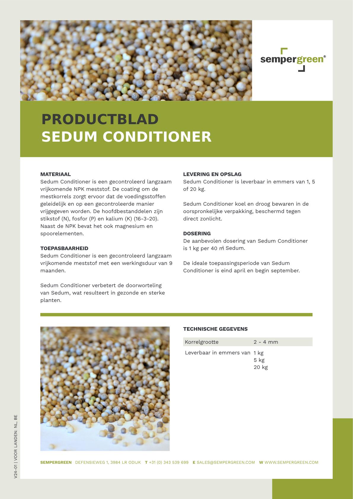 Sedum Conditioner is een gecontroleerd langzaamvrijkomende NPK meststof. De coating om demestkorrels zorgt ervoor dat de voedingsstoffengeleidelijk en op een gecontroleerde maniervrijgegeven worden.