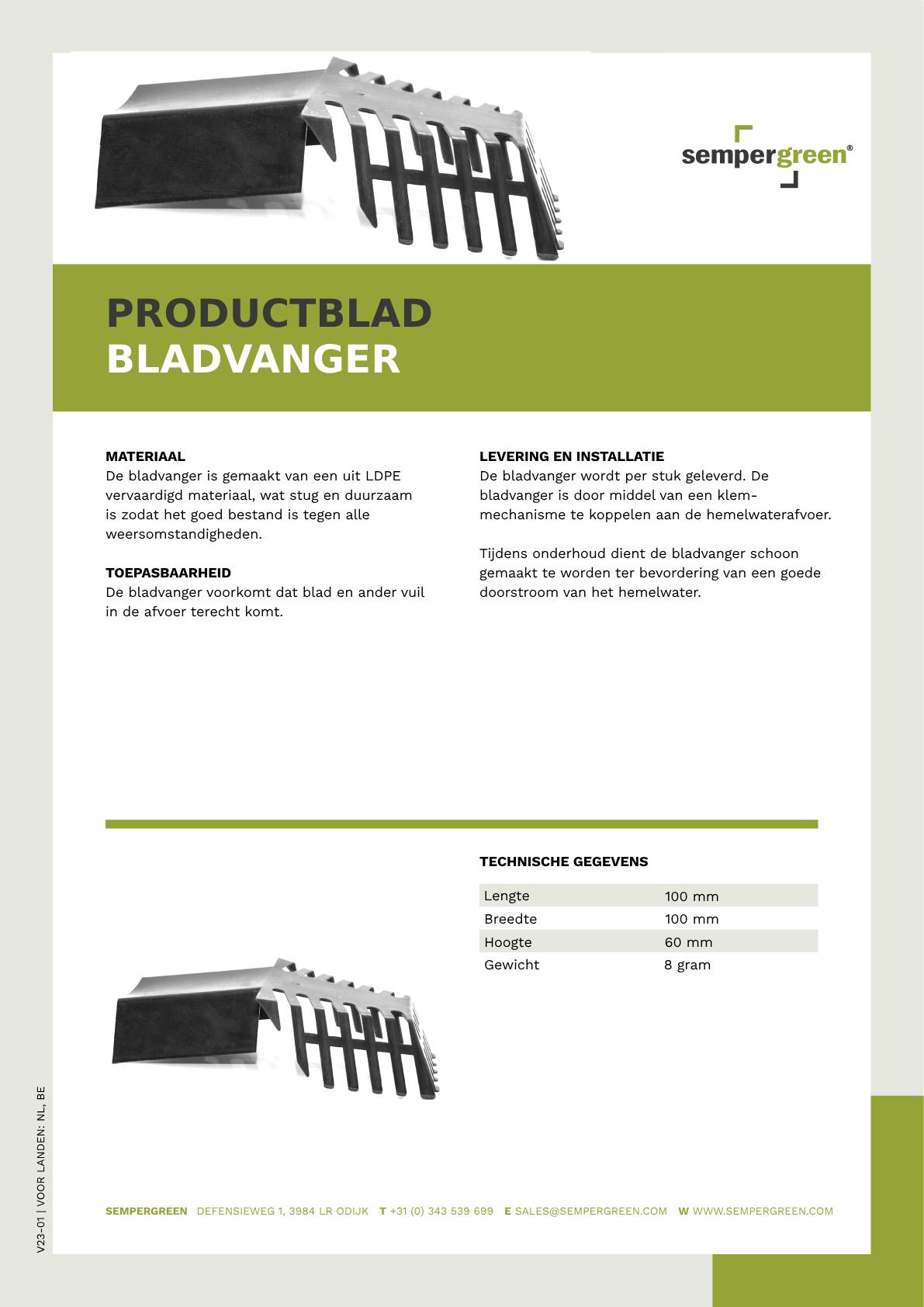 Tijdens onderhoud dient de bladvanger schoon gemaakt te worden ter bevordering van een goede doorstroom van het hemelwater.