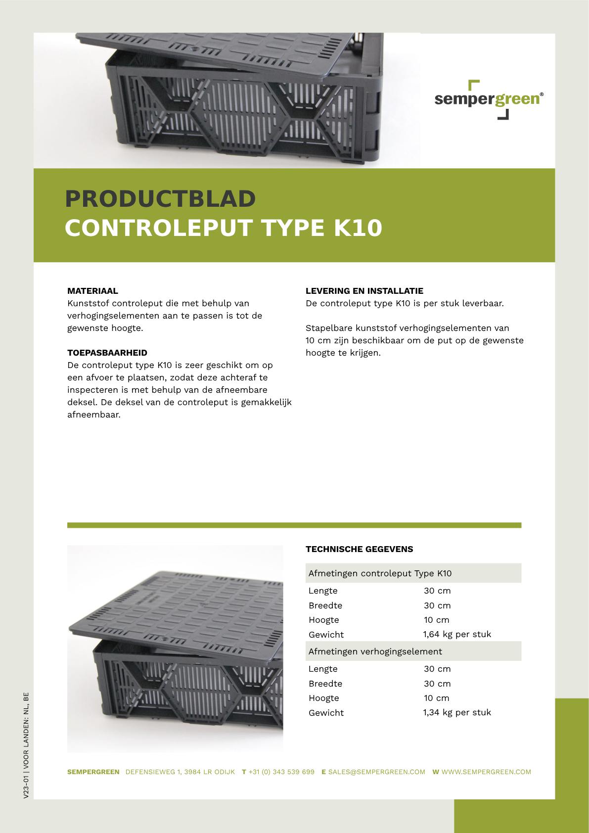 De controleput type K10 is zeer geschikt om op een afvoer te plaatsen, zodat deze achteraf te inspecteren is met behulp van de afneembare deksel.
