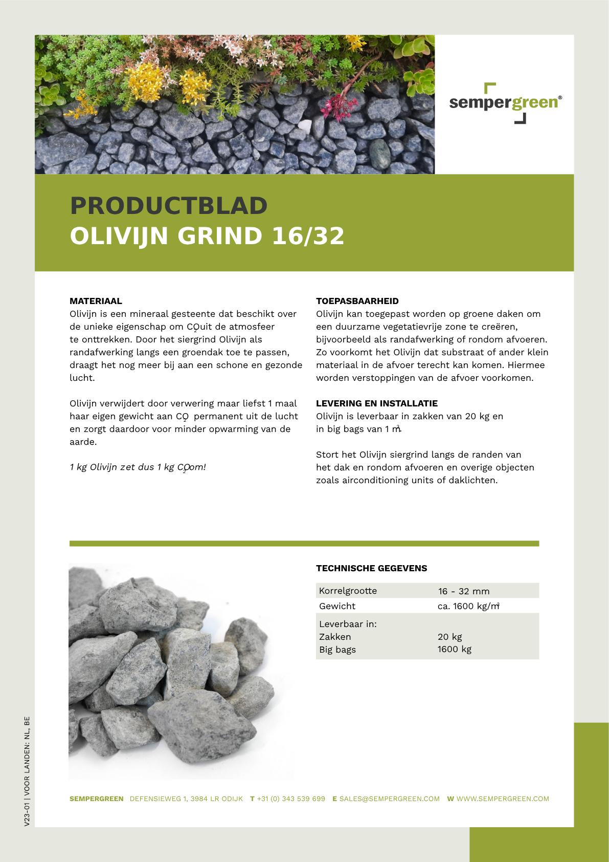 Olivijn is leverbaar in zakken van 20 kg en in big bags van 1 m3.