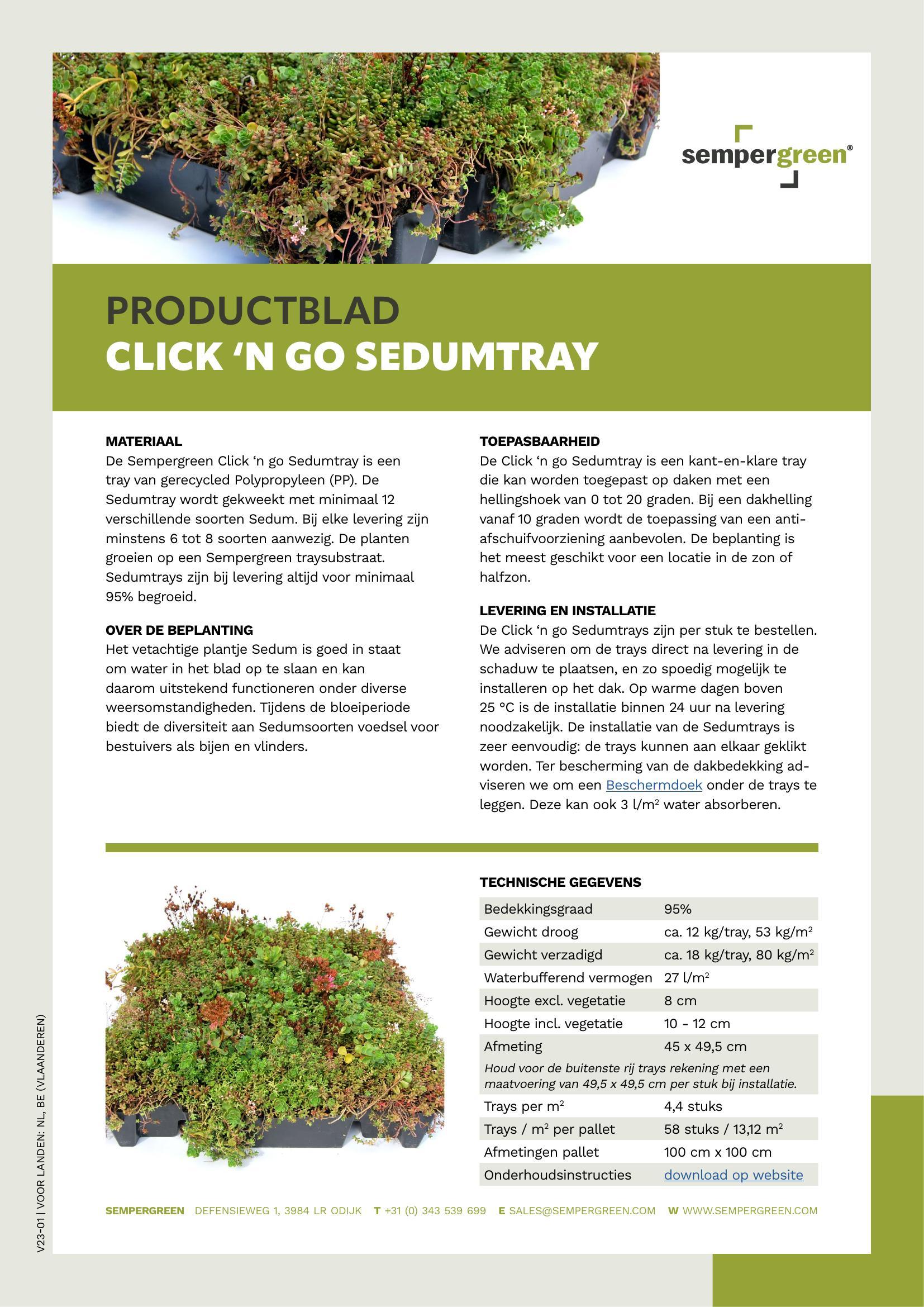 De Click ‘n go Sedumtray is een kant-en-klare tray die kan worden toegepast op daken met een hellingshoek van 0 tot 20 graden.