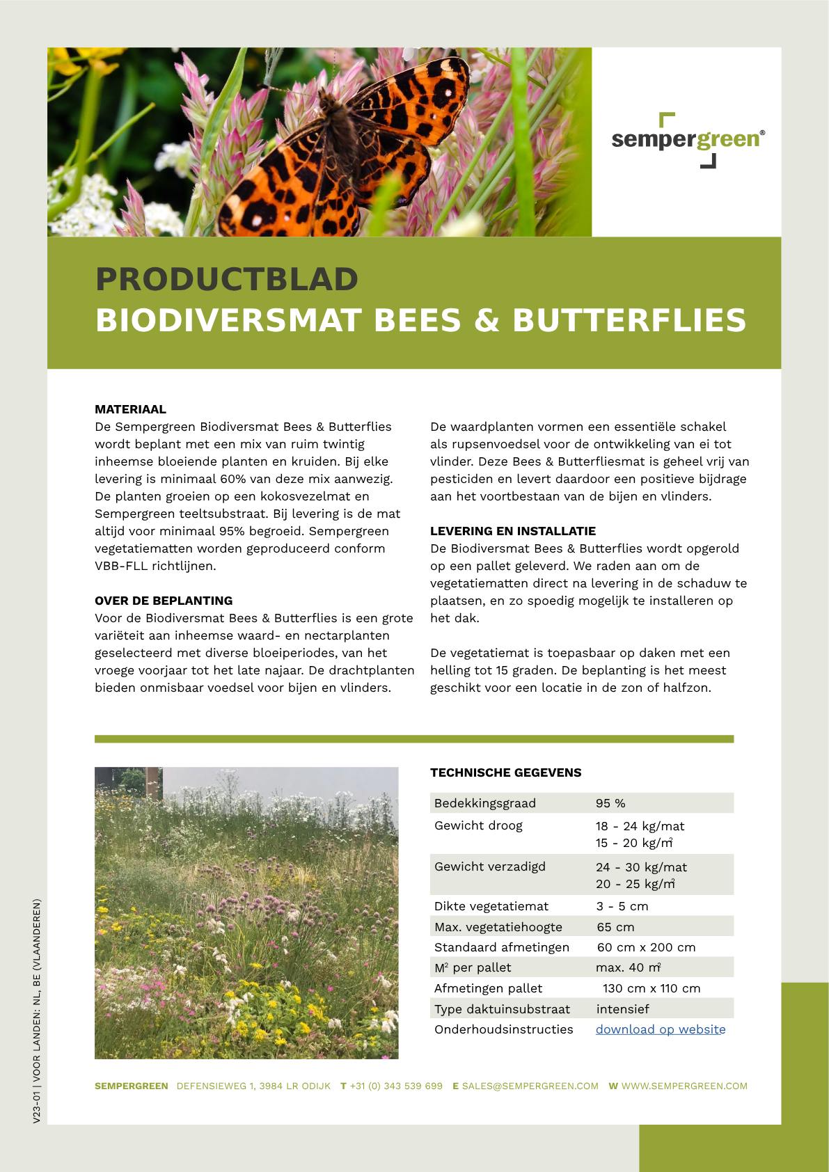 Bij levering is de mataltijd voor minimaal 95% begroeid. Sempergreen vegetatiematten worden geproduceerd conform VBB-FLL richtlijnen.