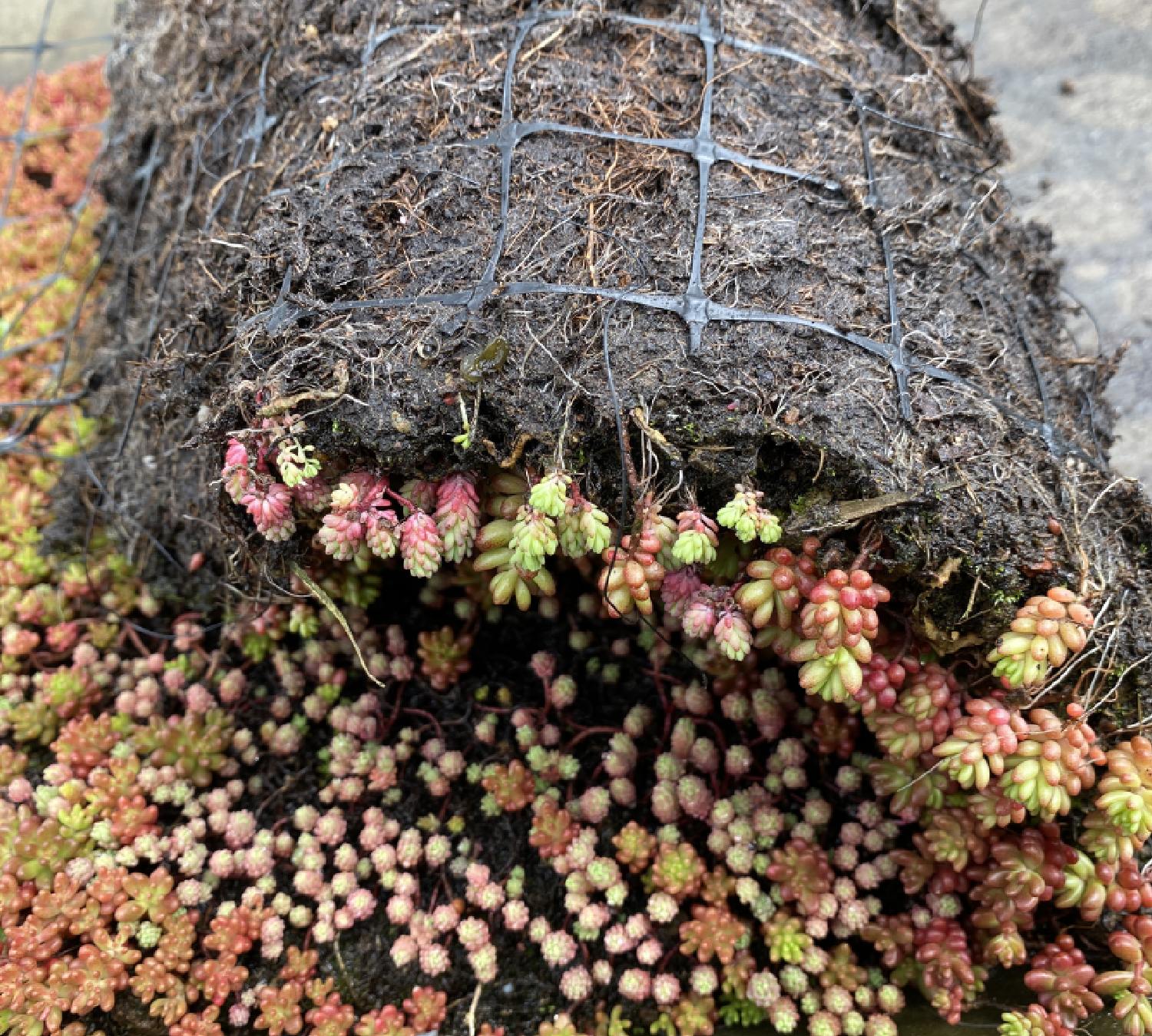 De planten groeien op een kokosvezelmat en Sempergreen teeltsubstraat.