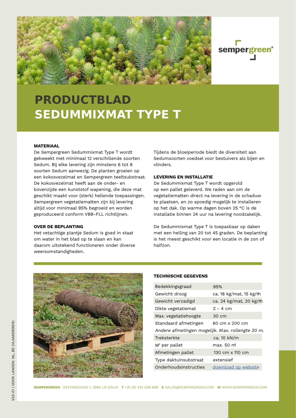 De Sempergreen Sedummixmat Type T wordt gekweekt met minimaal 12 verschillende soorten Sedum.